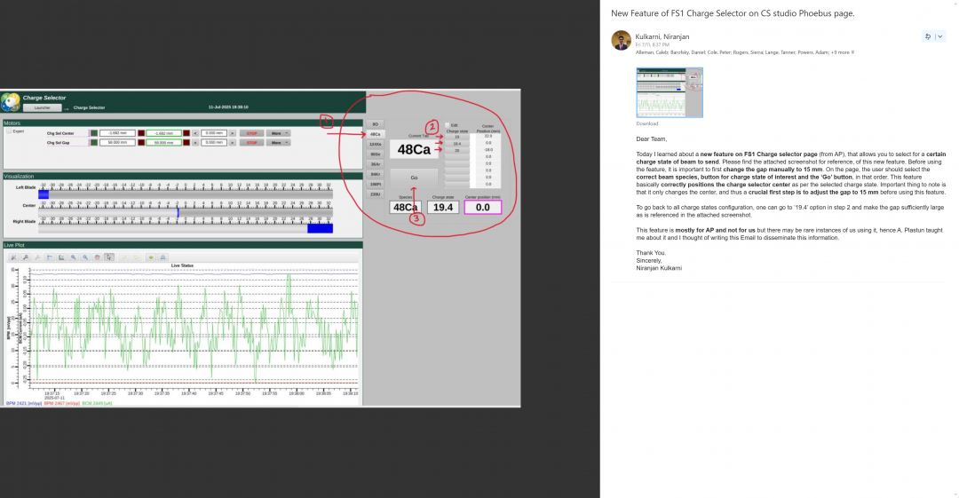 Some of the information on setting the FS1 slits was taken from an email from July 11, 2025. A screenshot of this email is posted below.