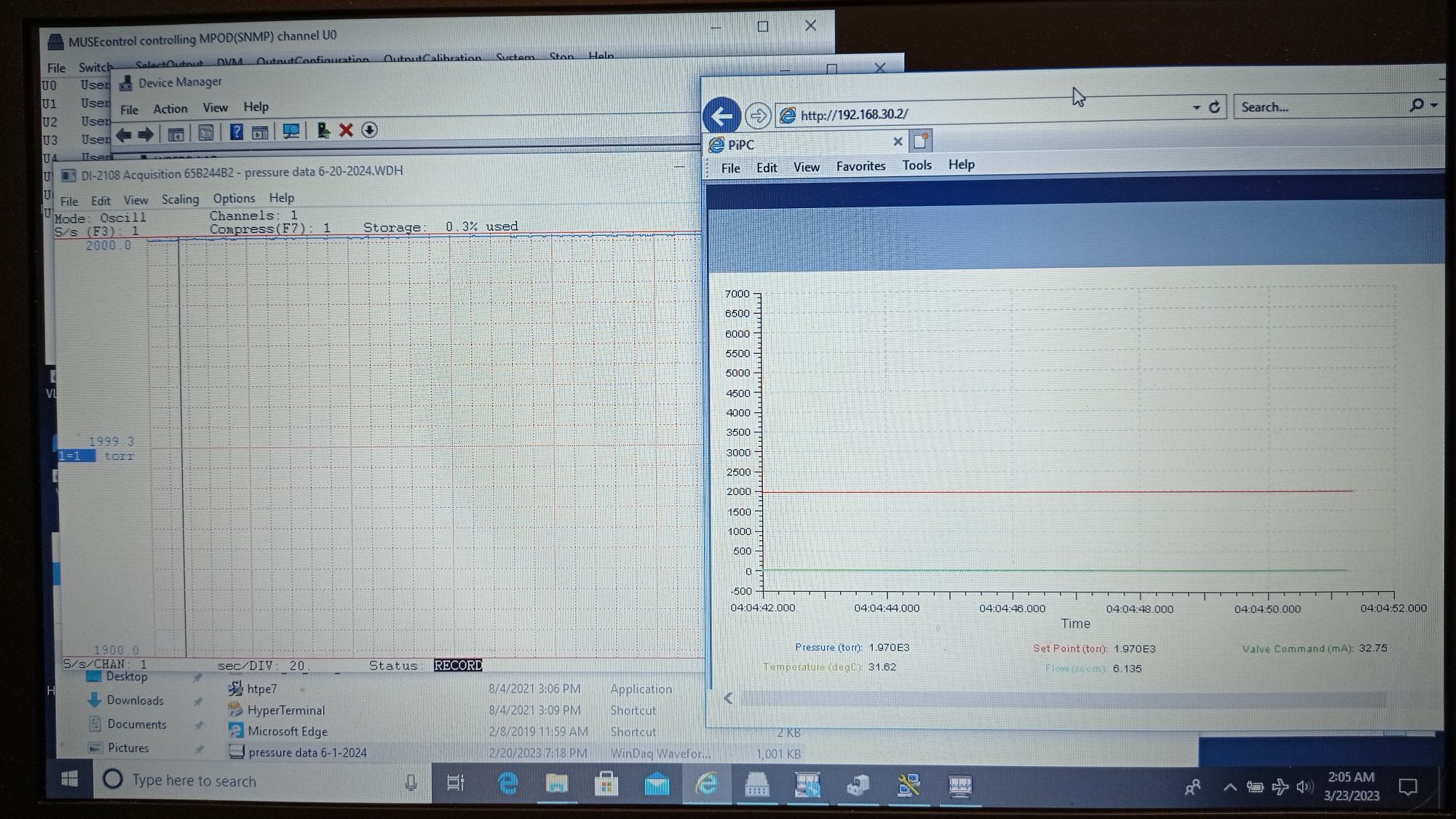 | 0550 | 504 | 19.3 | 0370 | began 11-06-2024 15:00; just noticed at the start of this run that the pressure data recording software (DI-2108) had crashed and was restarted in a new file titled 'pressure data 11-06-2024' |